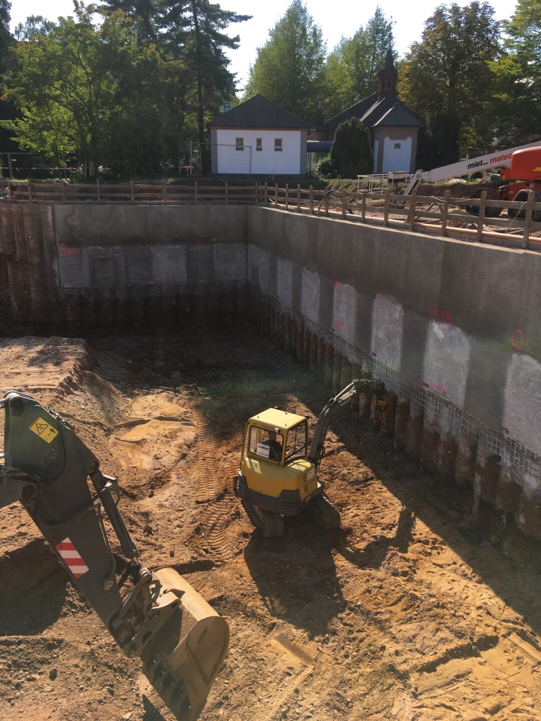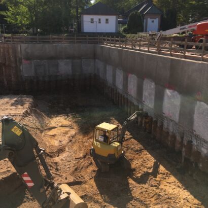 Arbeitsgemeinschaft mit der Fa. Demler Spezialtiefbau GmbH & Co. KG (Leistungen: überschnittene Bohrpfahlwand d=88 cm t=12,00 m gesamte gebohrte Pfahllänge ca. 3.600 m, Rückverankerung gesamte Ankerlänge ca. 2.000 m)